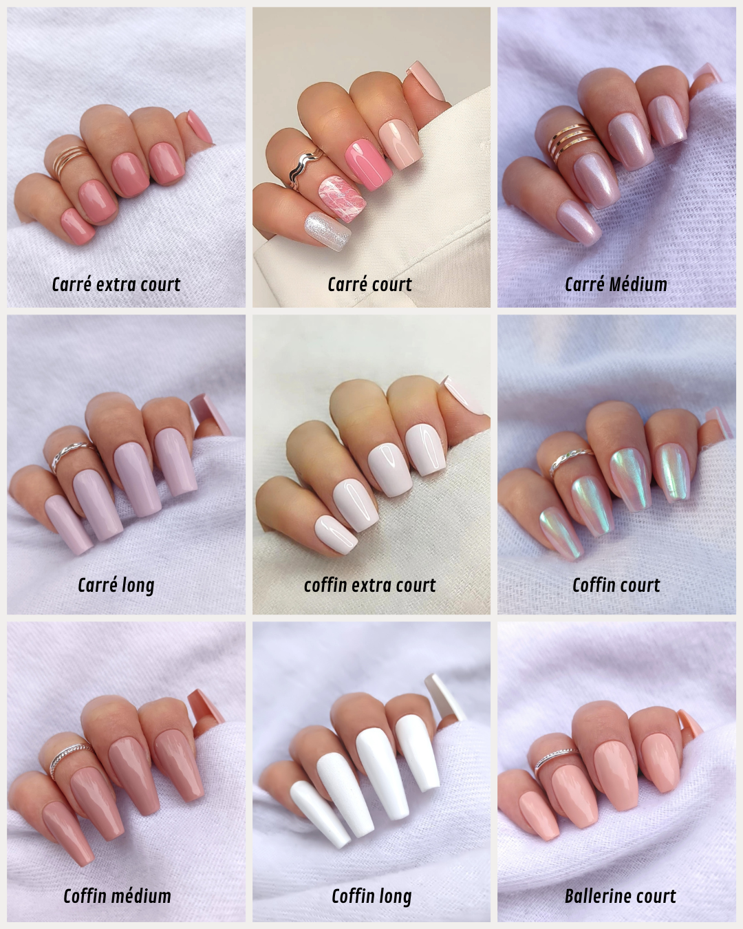 Ce sont des faux ongles de qualité salon, réutilisables à l'infini, et personnalisables ! Leur qualité permet une résistance à toute épreuves et un effet naturel garanti